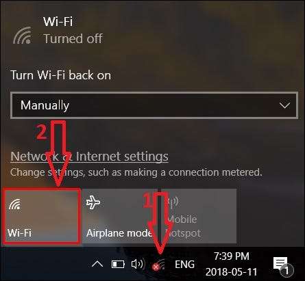 पहली चीज़ जो आपको करने की ज़रूरत है, यह सुनिश्चित करें कि विंडोज़ में वाई-फाई सक्षम है ताकि आपका कंप्यूटर आपके क्षेत्र में उपलब्ध नेटवर्क को "देख" सके। टास्कबार में वाई-फाई आइकन पर क्लिक करें और फिर "वाई-फाई" बटन पर क्लिक करें।