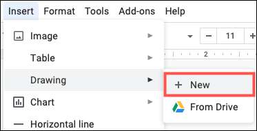 इसके बाद, सम्मिलित करें पर क्लिक करें & gt; मेनू से ड्राइंग और "नया" चुनें।