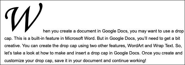 आप ड्रॉप कैप का उपयोग करके अपने दस्तावेज़ में एक अच्छा सजावटी तत्व जोड़ सकते हैं। जबकि Google डॉक्स एक की पेशकश नहीं करता है ड्रॉप-कैप सुविधा जैसे Microsoft Word , आप अभी भी कुछ ही मिनटों में एक बना सकते हैं।