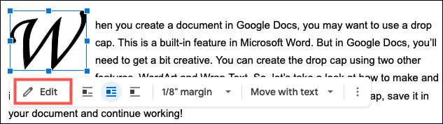 यह ड्रॉप कैप बनाने के लिए उपयोग की जाने वाली ड्राइंग विंडो को फिर से खोल देगा। अपने परिवर्तन करें और अपना काम सहेजें, और आप अपने दस्तावेज़ पर लागू परिवर्तन देखेंगे।