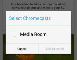 उन बैकग्राउंड के माध्यम से इच्छित Chromecast का चयन करें। जब तक आप वर्तमान में हैं, तब तक आप क्रोमकास्ट का चयन नहीं कर सकते हैं, इसलिए यदि आपके क्रोमकास्ट को आपके टीवी के यूएसबी पोर्ट में प्लग किया गया है तो आपको क्रोमकास्ट को ऑनलाइन लाने के लिए पहले टीवी चालू करना होगा।