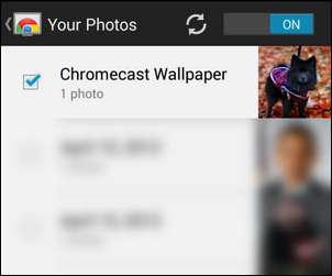 यदि आप एकल टॉगल सेट करते हैं, तो आपको एकल श्रेणी मिलेगी; अगर आप सिर्फ अपनी निजी तस्वीरें देखना चाहते हैं तो सब कुछ बंद कर दें लेकिन "आपकी तस्वीरें" बंद हो जाएंगी। यदि आप छवियों का मिश्रण चाहते हैं, तो जितनी चाहें उतनी श्रेणियां टॉगल करें; आपके द्वारा चयनित (जैसे व्यक्तिगत फ़ोटो, कलाकृति और उपग्रह इमेजरी) के बीच क्रोमकास्ट घूमता रहेगा।