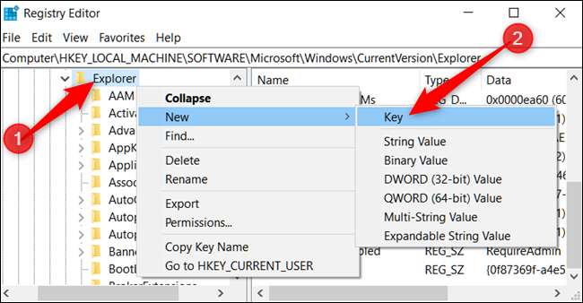 कुंजी पहले से मौजूद नहीं है, आपको इसे बनाने की आवश्यकता होगी। मूल कुंजी पर राइट-क्लिक करें (
