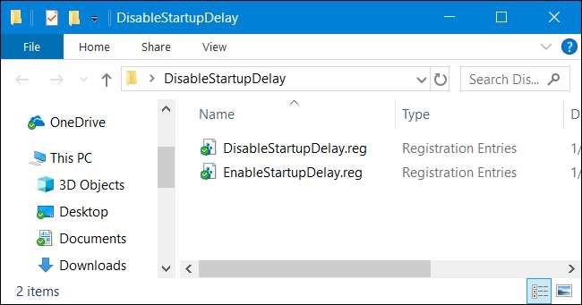 अंदर आप एक खोज करेंगे REG फ़ाइल विंडोज में स्टार्टअप देरी को अक्षम करने के लिए और इसे फिर से सक्षम करने के लिए। एक बार निकाले जाने के बाद, अपनी इच्छित फ़ाइल को डबल-क्लिक करें और संकेतों को स्वीकार करें कि क्या आप सुनिश्चित हैं कि आप अपनी रजिस्ट्री में परिवर्तन करना चाहते हैं।
