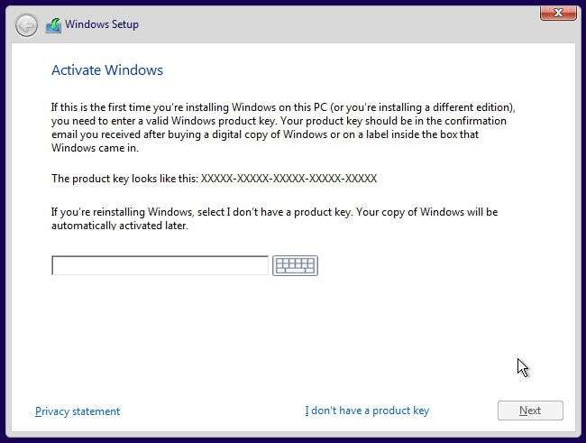 - यदि आपने पहले कभी इस कंप्यूटर पर विंडोज 10 स्थापित और सक्रिय नहीं किया है, तो आप सक्रियण स्क्रीन देखेंगे। यहां अपनी विंडोज 10 कुंजी दर्ज करें। यदि आपके पास एक नहीं है, लेकिन आपके पास 7, 8 या 8.1 कुंजी है, तो इसके बजाय यहां दर्ज करें।