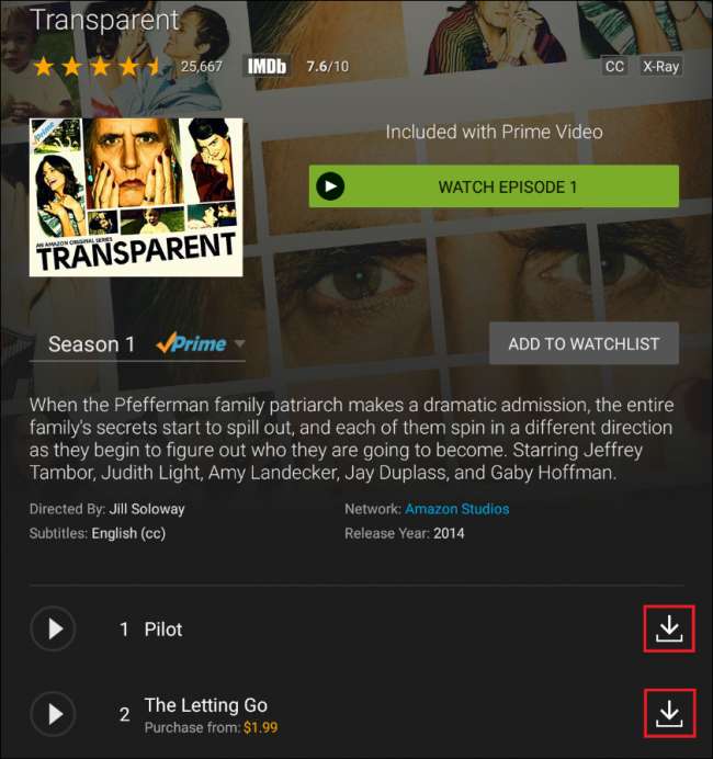 एक बार शो (या मूवी) हब के उठने के बाद, आपको प्रत्येक एपिसोड के आगे एक छोटा आइकन देखना चाहिए, जो नीचे हाइलाइट किए गए बॉक्स की तरह दिखाई देता है: