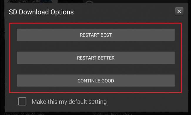 इस मेनू में आप डाउनलोड को रोक या रद्द करने में सक्षम होंगे, साथ ही आप जो भी डाउनलोड कर रहे हैं उसकी गुणवत्ता को बदल सकते हैं यदि आपके स्टोरेज ड्राइव पर उपलब्ध स्थान प्रीमियम पर चल रहा है। ये सेटिंग अमेजन के मनमाने माप से लेकर "अच्छे" से "बेहतर" से "सर्वश्रेष्ठ" तक होती हैं, जिसकी बिटरेट उस डिवाइस के आधार पर भिन्न होगी, जिसे आप देख रहे हैं।