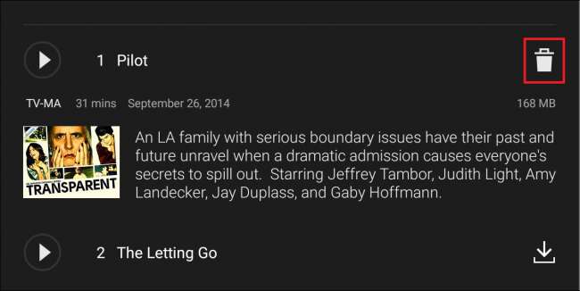 यदि आप किसी ऐसे शो को हटाना चाहते हैं जिसे आप पहले ही डाउनलोड और देख चुके हैं, तो डिवाइस पर एक बार, कोई भी स्थानीय सामग्री अमेज़ॅन वीडियो ऐप में उसके बगल में "ट्रैशकेन" आइकन के साथ दिखाई देगी। इसे टैप करें, और आपके संग्रहण स्थान को स्वचालित रूप से मुक्त कर दिया जाएगा।