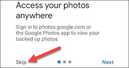 यदि आप पहली बार ऐप खोल रहे हैं, तो आपसे पूछा जाएगा कि क्या आप क्लाउड का उपयोग करना चाहते हैं "बैक अप & amp; सिंक "सुविधा। Google फ़ोटो का उपयोग करने की आवश्यकता नहीं है, ताकि यदि आप चाहें तो इसे छोड़ दें।