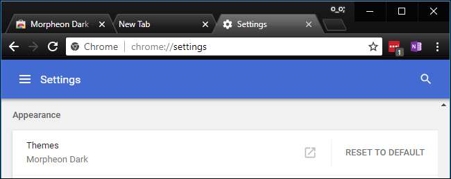 दुर्भाग्य से, Chrome की सेटिंग पृष्ठ हमेशा सफेद और नीले रंग के होंगे। सुरक्षा कारणों से एक्सटेंशन में छेड़छाड़ नहीं की जा सकती। Chrome का संदर्भ मेनू ऑपरेटिंग सिस्टम द्वारा प्रदान किया जाता है, इसलिए आप उन अंधेरे को चालू नहीं कर सकते - कम से कम तब तक नहीं विंडोज 10 का डार्क मोड आवेदन संदर्भ मेनू पर भी लागू होता है।