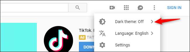 यदि आप साइन इन नहीं हैं, तो इसके बजाय मेनू बटन (यह तीन ऊर्ध्वाधर डॉट्स जैसा दिखता है) पर क्लिक करें। आपको यहाँ "डार्क थीम" समान विकल्प मिलेगा।