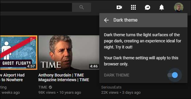 YouTube के लिए डार्क थीम को सक्षम करने के लिए "डार्क थीम" स्लाइडर को सक्रिय करें। यह सेटिंग केवल आपके वर्तमान वेब ब्राउज़र पर लागू होती है, इसलिए आपको अपने द्वारा उपयोग किए जाने वाले प्रत्येक कंप्यूटर पर डार्क थीम को सक्षम करना होगा - यह आपके Google खाते के साथ सिंक नहीं करता है।