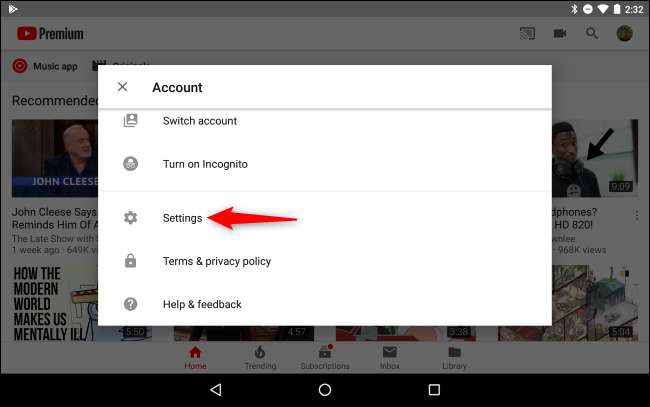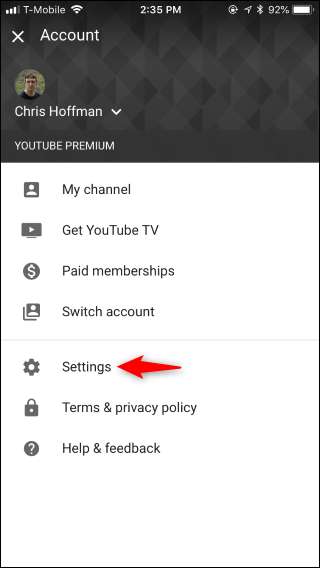 यदि आपके पास डार्क मोड विकल्प है, तो आप इसे YouTube ऐप के ऊपरी दाएं कोने में अपने प्रोफ़ाइल आइकन पर टैप करके पाएंगे और फिर "सेटिंग" टैप कर पाएंगे।