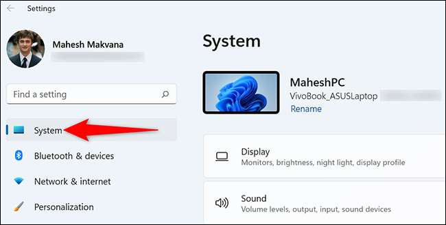 सेटिंग्स में, बाएं साइडबार से, "सिस्टम" का चयन करें।