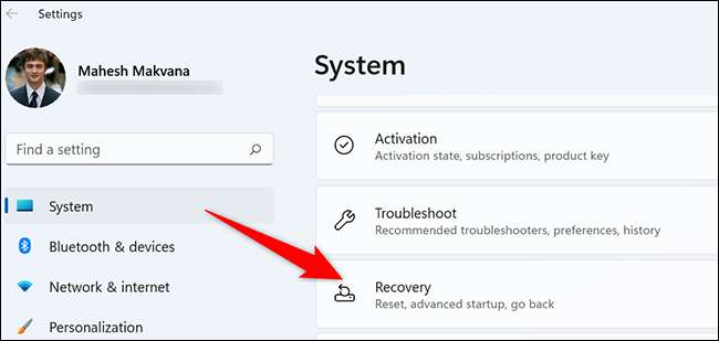 "सिस्टम" पृष्ठ पर, "रिकवरी" पर क्लिक करें।