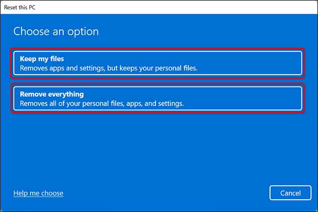 आप एक "इस पीसी को रीसेट करें" विंडो देखेंगे। इस विंडो में, निम्न दो विकल्पों में से एक चुनें: