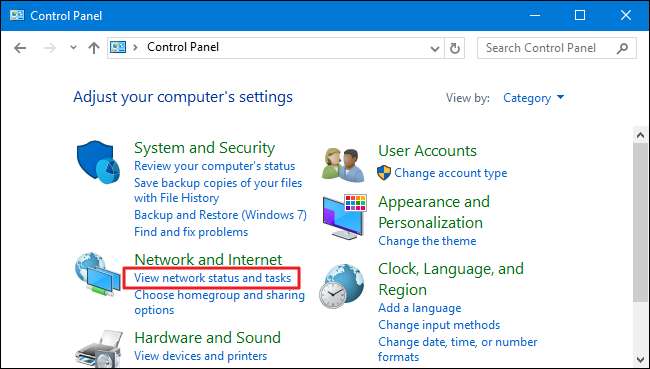 "नेटवर्क और इंटरनेट" श्रेणी में, "नेटवर्क स्थिति और कार्य देखें" लिंक पर क्लिक करें।