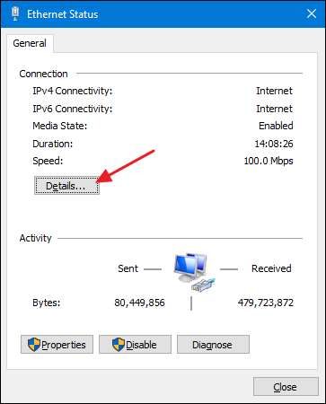 "ईथरनेट स्थिति" विंडो में, "विवरण" बटन पर क्लिक करें।