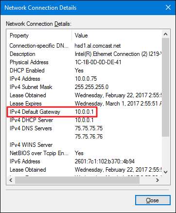 "नेटवर्क कनेक्शन विवरण" विंडो में, आप अपने राउटर के आईपी पते को "आईपीवी 4 डिफॉल्ट गेटवे" के रूप में सूचीबद्ध पाएंगे।