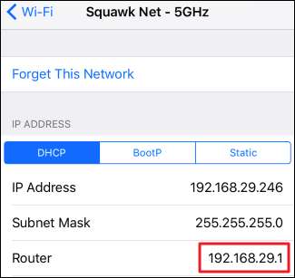 किसी iPhone या iPad पर, सेटिंग्स> Wi-Fi पर जाएं और फिर अपने Wi-Fi नेटवर्क के नाम पर टैप करें। आप राउटर के आईपी पते को "राउटर" के रूप में सूचीबद्ध देखेंगे।
