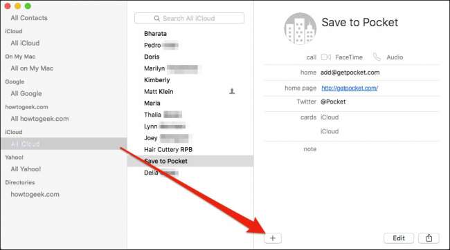 इसके बाद, बाएं हाथ के संपर्क फलक के निचले-दाएं कोने में "+" बटन पर क्लिक करें।