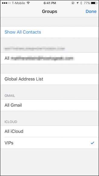 अब केवल उस समूह या समूहों को टैप करें जिन्हें आप दिखाना चाहते हैं। इस मामले में, हम केवल अपना विशेष समूह "VIP" दिखा रहे हैं।