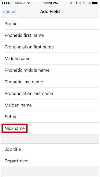 "उपनाम" पर टैप करें और इसे एडिट फ़ील्ड में जोड़ा जाएगा।