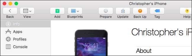 एक बार जब आप ऐसा करते हैं, तो अपने शामिल केबल का उपयोग करके अपने मैक से अपने iPhone या iPad को कनेक्ट करें और Apple कॉन्फ़िगरेशनर लॉन्च करें। मुख्य Apple कॉन्फ़िगरेशन स्क्रीन पर कनेक्टेड डिवाइस को डबल-क्लिक करें, फिर आरंभ करने के लिए स्क्रीन के शीर्ष पर "तैयार" बटन पर क्लिक करें।