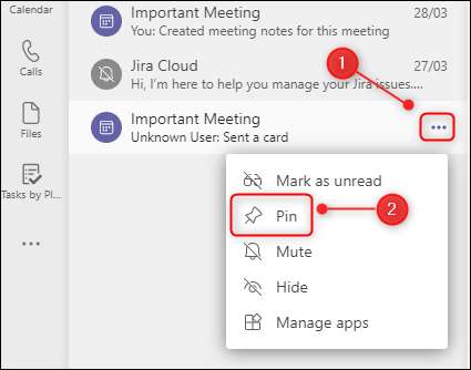 एक बार जब आप चैट छुपाते हैं जिन्हें आपको देखने की आवश्यकता नहीं है, तो आप चैट पैनल के शीर्ष पर सबसे महत्वपूर्ण बातचीत पिन कर सकते हैं। चैट के बगल में तीन-डॉट आइकन पर क्लिक करें और संदर्भ मेनू से "पिन" चुनें।