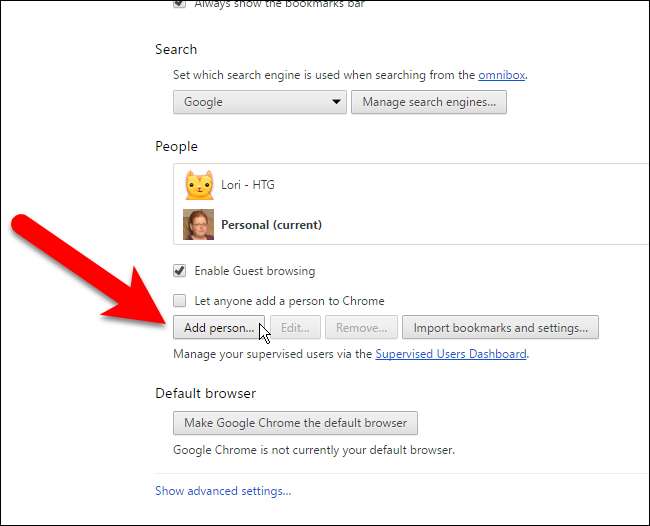 सेटिंग्स पृष्ठ एक नए टैब पर खुलता है। लोग अनुभाग में, "व्यक्ति जोड़ें" पर क्लिक करें।