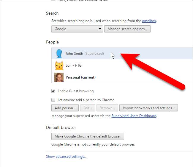 नोट: आपको इस नई प्रोफ़ाइल का उपयोग नहीं करना है, लेकिन कम से कम एक पर्यवेक्षित उपयोगकर्ता होना चाहिए ताकि आप उस विकल्प तक पहुंच सकें, जो आपकी प्रोफ़ाइल को लॉक करता है।