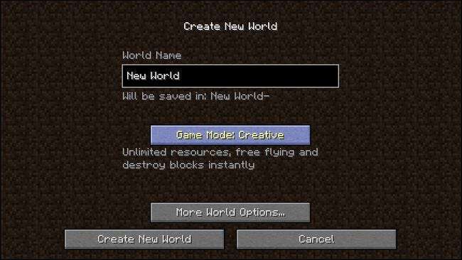 यदि आपका बच्चा Minecraft-as-LEGO-ब्लॉक में Minecraft-as-post-apocalyptic-अस्तित्व-सिम्युलेटर की तुलना में अधिक रुचि रखता है, तो रचनात्मक मोड आपके लिए वन-स्टॉप समाधान है। जब यह बनाया जाता है तो गेम मोड प्रत्येक Minecraft दुनिया के लिए सेट किया गया है। अपने बच्चे के लिए रचनात्मक गेमप्ले सेट करने का सबसे आसान तरीका है कि आप गेम शुरू करके एक नई दुनिया बनाएं, "सिंगलप्लेयर", "न्यू वर्ल्ड बनाएं" पर क्लिक करें और फिर निर्माण प्रक्रिया के दौरान "गेम मोड: क्रिएटिव" का चयन करके गेममोड को टॉगल करें। । जब आप कार्य कर रहे हों, और आप व्यवसाय में हों, तो स्क्रीन के नीचे "नई दुनिया बनाएं" पर क्लिक करें।