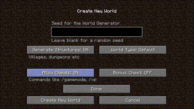 यह ध्यान रखना महत्वपूर्ण है कि ये कमांड केवल खिलाड़ी के लिए उपलब्ध हैं यदि खेल में धोखा दिया जाता है। आप विश्व निर्माण चरण के दौरान चीट्स के विकल्प को शुरू करके धोखा दे सकते हैं, जैसा कि नीचे देखा गया है: "धोखा देने की अनुमति दें"। यदि विश्व निर्माण प्रक्रिया के दौरान दुनिया रचनात्मक मोड पर सेट की गई थी, तो डिफ़ॉल्ट रूप से धोखा होता है।