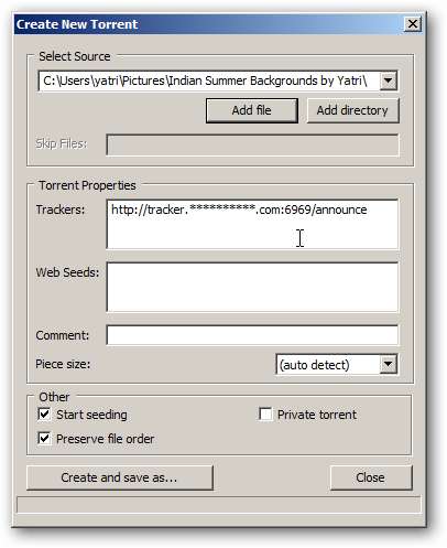 जब आप तैयार हों, तो अपनी टोरेंट फ़ाइल को सहेजने के लिए Create and save ... पर क्लिक करें। बस!