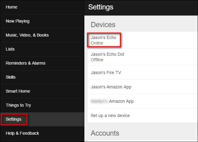 दूसरा, अपने फोन या वेब ब्राउजर के जरिए एलेक्सा कंट्रोल पैनल को एक्सेस करें। सेटिंग्स पर क्लिक करें और फिर उस इको डिवाइस को चुनें जिसे आप "डिवाइसेस" सूची से जोड़ना चाहते हैं।