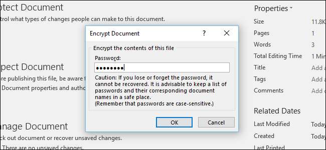 दो बड़ी चीजें हैं जिन्हें आपको देखने की जरूरत है। सबसे पहले, केवल पासवर्ड जो दस्तावेज़ को पूरी तरह से एन्क्रिप्ट करते हैं सुरक्षित हैं। कार्यालय आपको एक फ़ाइल को सिद्धांत में "संपादन प्रतिबंधित" करने के लिए एक पासवर्ड सेट करने की अनुमति देता है, जिससे लोग किसी फ़ाइल को देख सकते हैं लेकिन इसे पासवर्ड के बिना संपादित नहीं कर सकते। इस प्रकार के पासवर्ड को आसानी से क्रैक और हटाया जा सकता है, जिससे लोग फ़ाइल को संपादित कर सकते हैं।