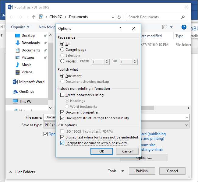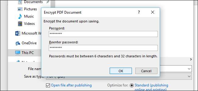 आप एक पीडीएफ फाइल के लिए एक कार्यालय दस्तावेज भी निर्यात कर सकते हैं और पासवर्ड उस पीडीएफ फाइल को सुरक्षित कर सकते हैं। पीडीएफ दस्तावेज़ आपके द्वारा प्रदान किए गए पासवर्ड के साथ एन्क्रिप्ट किया जाएगा। यह Microsoft Word में काम करता है लेकिन किसी कारण से एक्सेल नहीं।