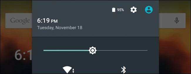 आप लॉलीपॉप की सुरक्षा सेटिंग्स में स्क्रीन पिनिंग चालू कर सकते हैं। वहां पहुंचने के लिए, सूचनाएँ खोलने के लिए ऊपर से स्वाइप करें और फिर दिनांक और समय के साथ ग्रे बार पर टैप करें। अब आप बैटरी और उपयोगकर्ता आइकन के बीच "सेटिंग" गियर आइकन पर टैप कर पाएंगे।
