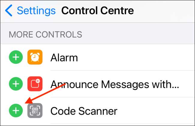 नीचे स्क्रॉल करें और "कोड स्कैनर" विकल्प के बगल में "+" आइकन टैप करें।