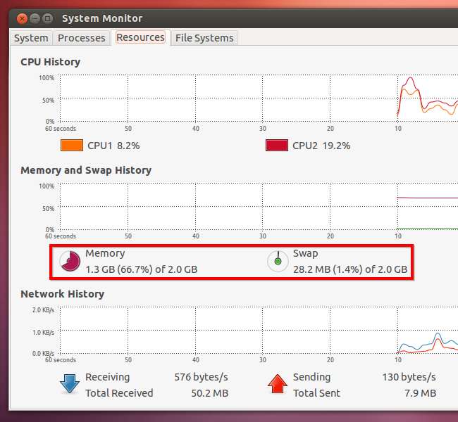 आपके RAM और स्वैप आकार की तुलना करने का एक त्वरित तरीका सिस्टम मॉनिटर एप्लिकेशन है।