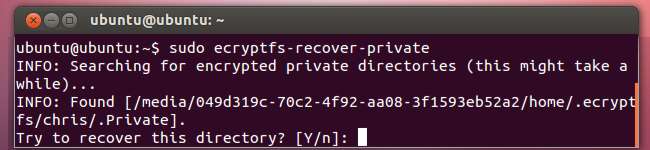 यदि यह एक पता लगाता है तो कमांड एक एन्क्रिप्टेड निर्देशिका को पुनर्प्राप्त करने की पेशकश करेगा।