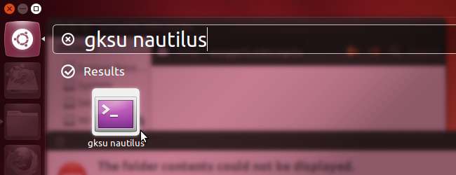 एक ग्राफिकल फ़ाइल ब्राउज़र के साथ डायरेक्टरी को एक्सेस करने के लिए, Nautilus को रूट के रूप में चलाएं। Alt + F2 दबाएं, टाइप करें gksu nautilus , और Enter दबाएँ।