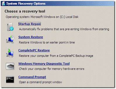 सिस्टम पुनर्प्राप्ति विकल्प संवाद में, सूची से सिस्टम पुनर्स्थापना चुनें और फिर अगला पर क्लिक करें।