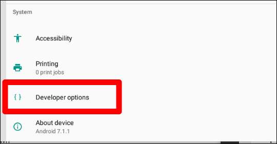 ऊपरी बाएं कोने में बैक बटन पर क्लिक करें, जो आपको मुख्य सेटिंग्स मेनू में वापस ले जाएगा। आपको यहां एक नया विकल्प दिखाई देगा: डेवलपर विकल्प। उस बुरे लड़के में क्लिक करें।