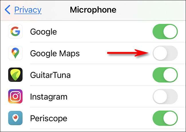 यदि आपको कभी भी लगता है कि एक ऐप आपके माइक्रोफ़ोन का उपयोग कर रहा है, तो बस सेटिंग्स और जीटी पर जाएं; गोपनीयता और जीटी; ऊपर वर्णित माइक्रोफोन और "बंद" के लिए स्विच को फ़्लिप करके ऐप की पहुंच को रद्द कर दें। आपको कामयाबी मिले!