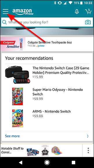 ऐसा करने के लिए, ऐप खोलें और ऊपरी बाएं कोने में मेनू बटन पर टैप करें, फिर अपना खाता चुनें।