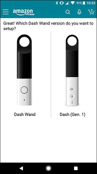 इसके बाद, डैश वैंड चुनें और अगली स्क्रीन पर, निर्दिष्ट करें कि आपके पास कौन सा मॉडल है। यदि आपने हाल ही में अपना सामान खरीदा है, तो यह संभवतः दूसरी पीढ़ी है। ऐप आपको प्रत्येक मॉडल की छड़ी की तस्वीर दिखाएगा ताकि आप पुष्टि कर सकें कि आपके पास कौन सा है।