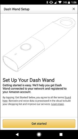 अपने डैश वैंड मॉडल का चयन करने के बाद, आपको नीचे की तरह एक स्क्रीन देखनी चाहिए। "आरंभ करें" टैप करें।