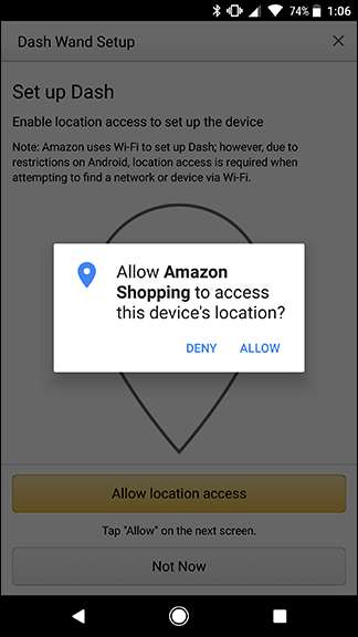 इसके बाद, आपको अपने डैश वैंड पर वाई-फाई स्थापित करने के लिए अपने स्थान का उपयोग करने के लिए अमेज़न ऐप को अनुमति देने की आवश्यकता होगी।