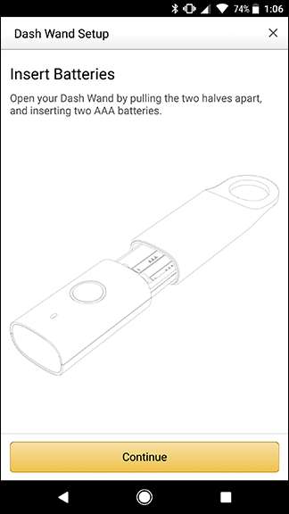 इस बिंदु पर, यदि आप पहले से ही नहीं हैं, तो दो डैश को अलग करके और शामिल एएए बैटरी सम्मिलित करके अपने डैश वैंड को खोलें।